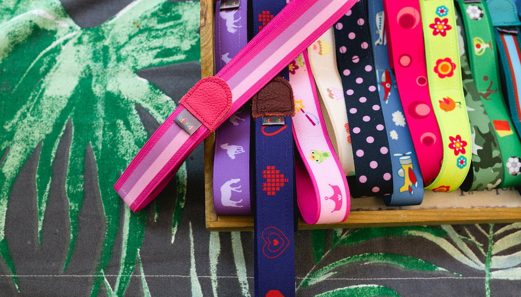 Unsere schnallenfreien Kindergürtel machen Anziehen kinderleicht und sehen dabei richtig cool aus.